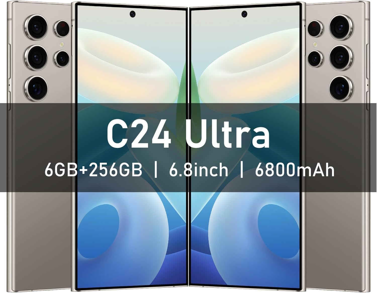 【Cell Phones+Giveaways】You’ll receive not only the C24 Ultra phone but also a box, a user manual, a charger adapter, a USB C data cable, a pair of headphones, a protective screen and a case