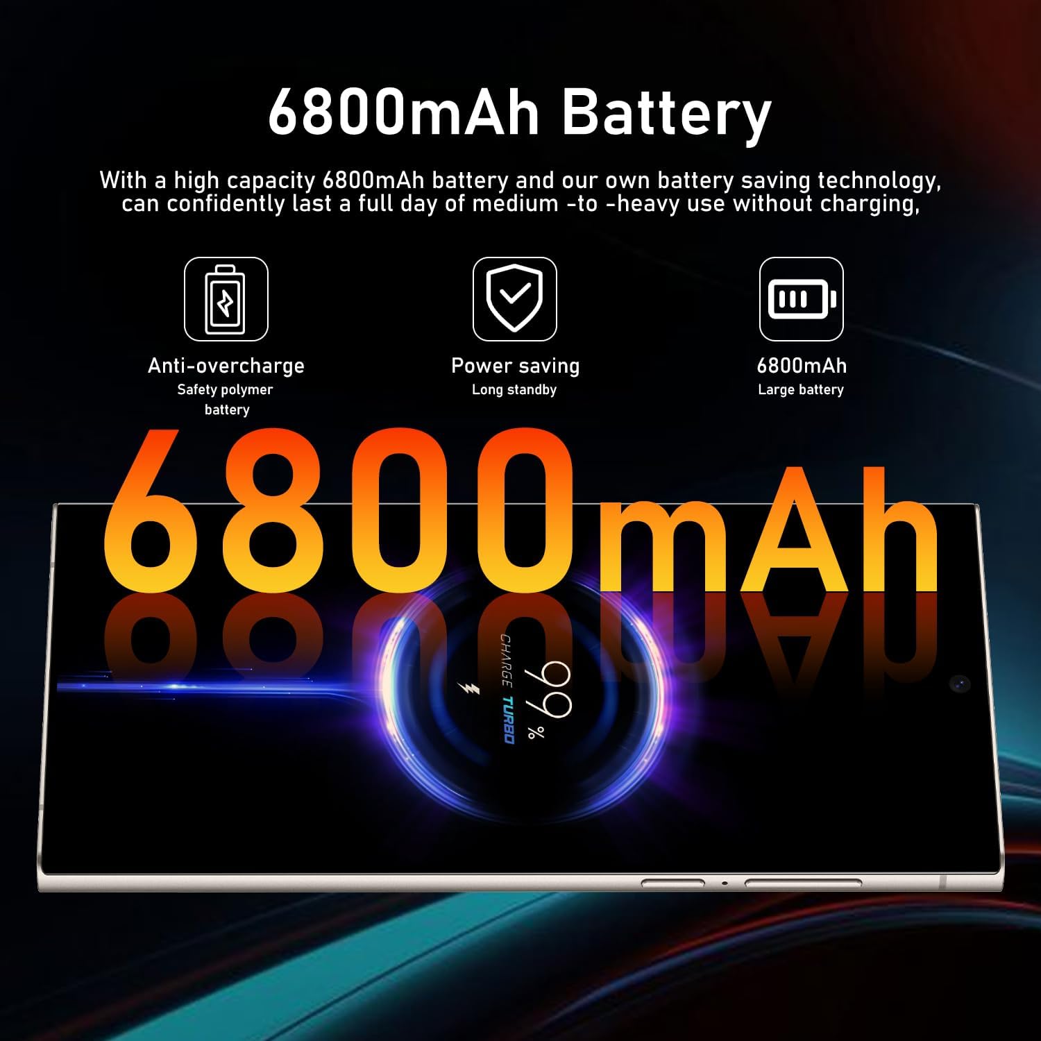 【6800mAh large battery】 The cell phone is equipped with a large 6800mAh battery, saying goodbye to battery anxiety. When you are still worrying about batteries, please choose it! Trust me, you don’t need to charge it all the time, because its battery is very big enough for you to use, and it is enough to meet your daily needs! you can immerse yourself in everything this phone has to offer without constantly worrying about charging. Whether you’re on a long road trip, exploring new places, or just making it through a busy day at work, this powerful battery ensures your smartphone stays charged when you need it most.