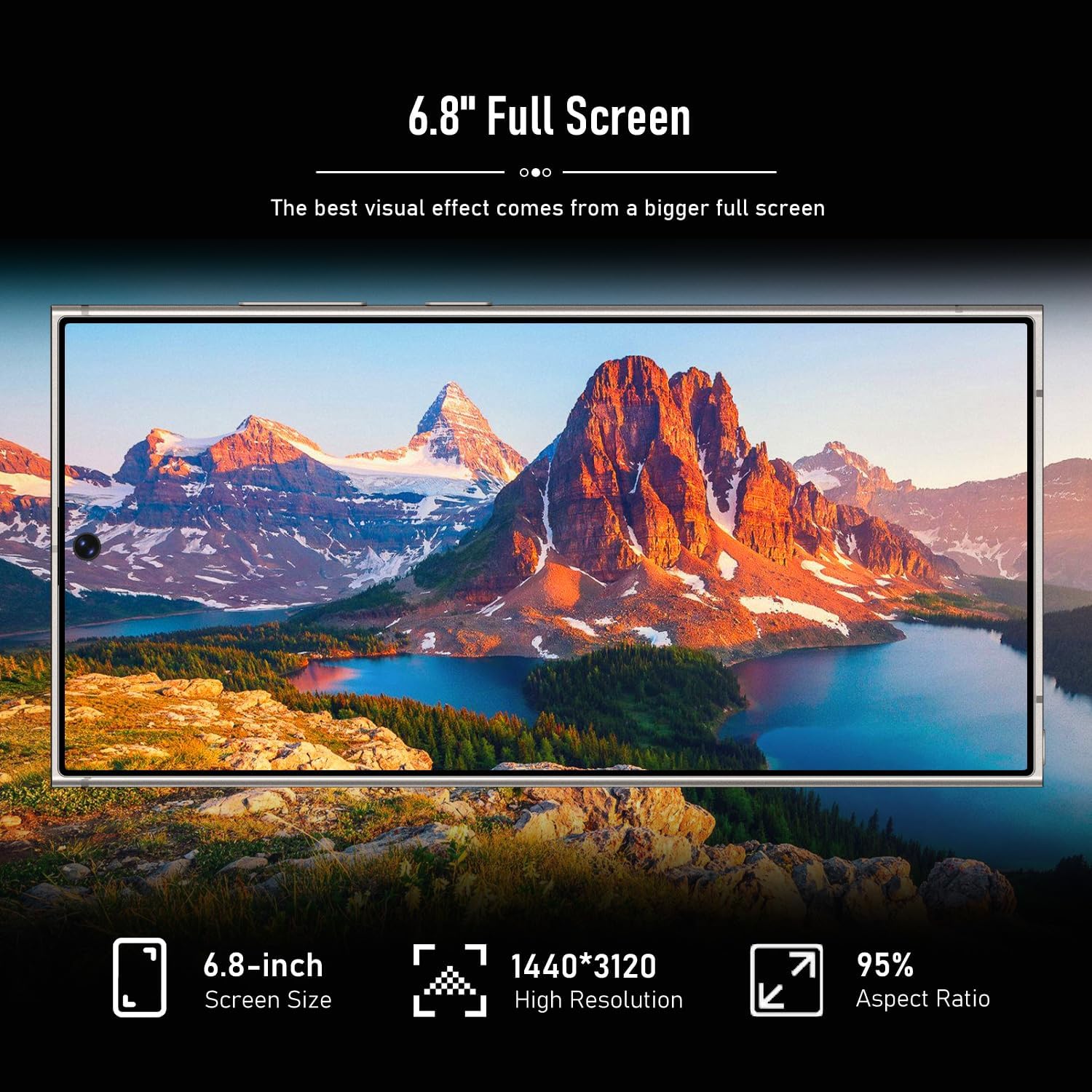 6.8 Inch Full Screen,This cell phones with the large 6.8″ HD+ LCD that delivers vivid details, and a 95% screen-to-body ratio.