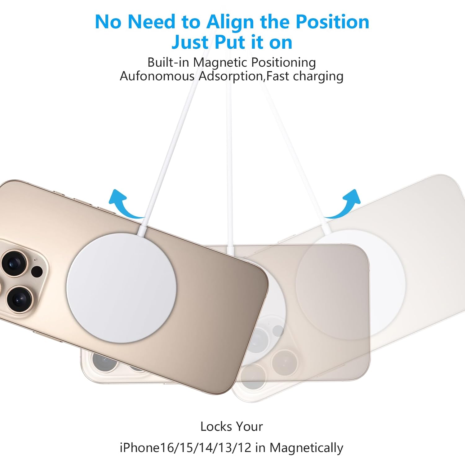 Designed to simplify your iPhone Magnetic Charger routine, Just place your iPhone on the charger, and the magnetic force will snap it into place, ensuring a secure and efficient charge every time. The strong magnetic alignment ensures your iPhone stays securely in place while charging.